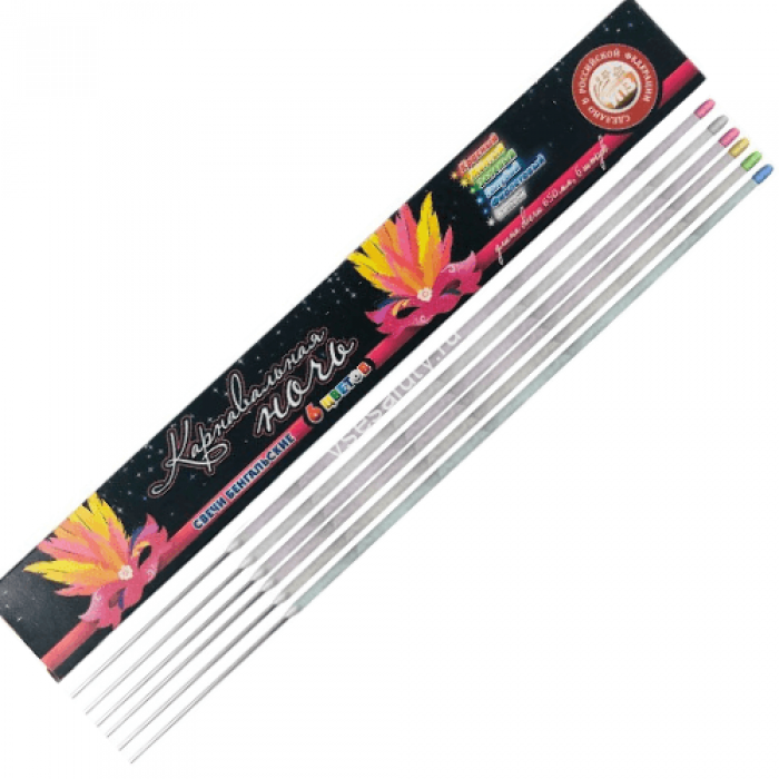 Свеча бенгальская 650 мм (6шт) Карнавальная ночь (кр., жёл., зел., гол., бел., фиол.)_1/18/6