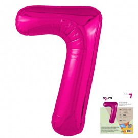 Аг 40 Фольгированный шар цифра "7" Фуксия Slim в упаковке / 1 шт.