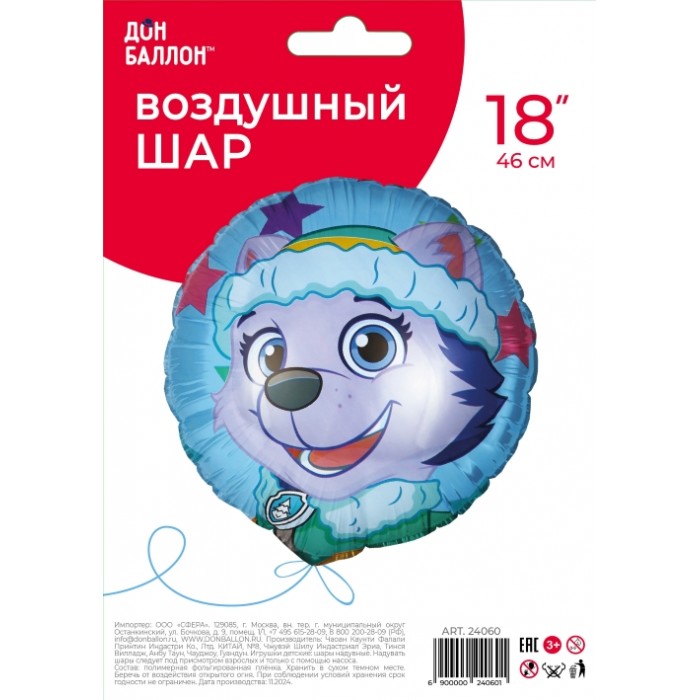 Шар (18''/46 см) Круг, Щенок Рейнджер, 1 шт. в уп.