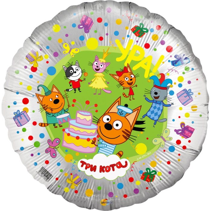 Шар (18''/46 см) Круг, Три Кота, Серебро, 1 шт.