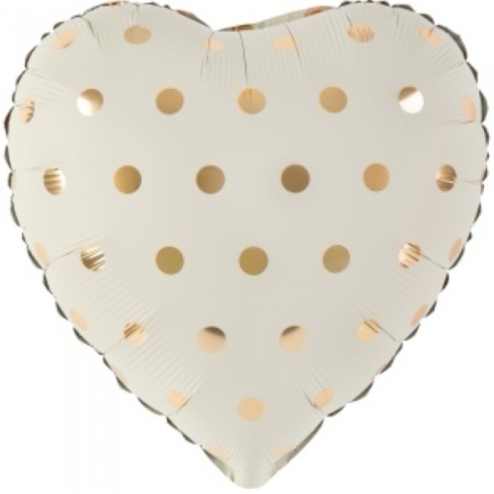 Шар (18''/46 см) Сердце, Золотой горошек, Кремовый, 1 шт.