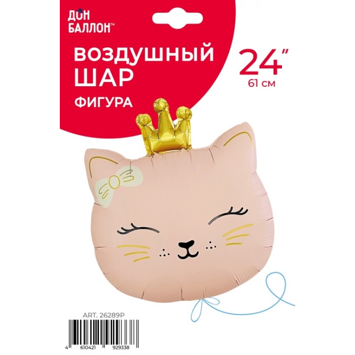 Шар (24''/61 см) Фигура, Кошечка Принцесса, Розовый, Сатин, 1 шт. в уп.