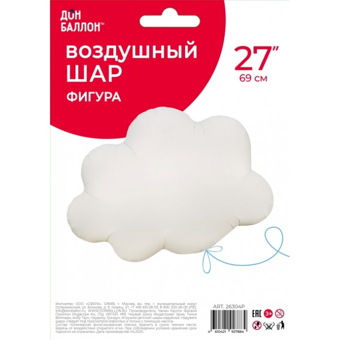 Шар (27''/69 см) Фигура, Облако, Сатин, 1 шт. в уп.