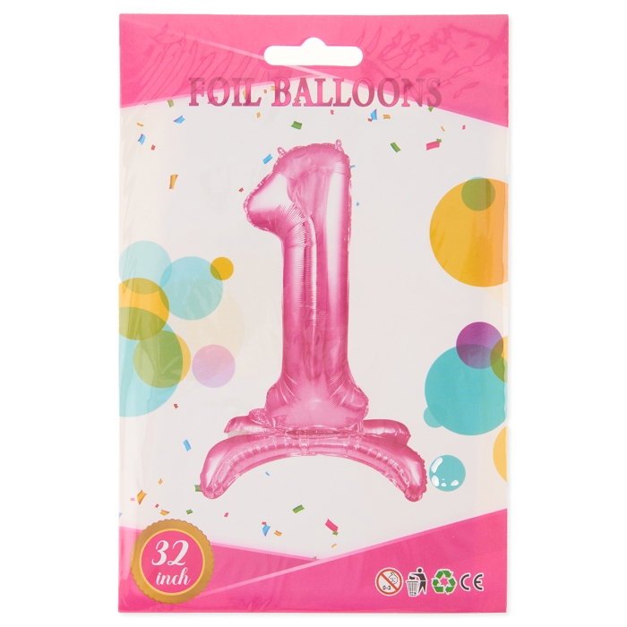 Шар (32''/81 см) Цифра, 1 на подставке, Розовый, 1 шт. в уп.