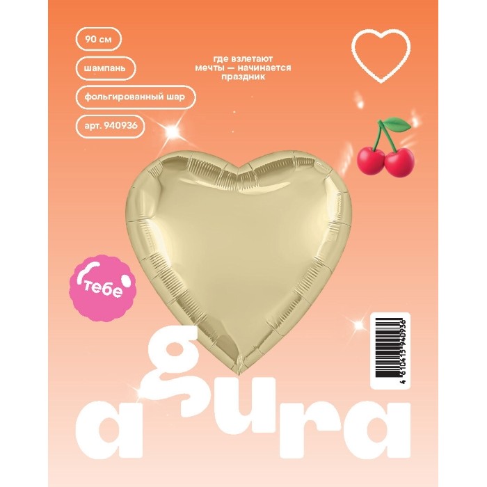 Шар (36''/91 см) Сердце, Шампань, 1 шт. в уп.