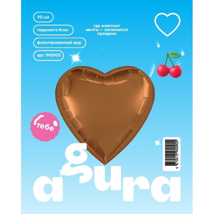 Шар (36''/91 см) Сердце, Терракота, Бохо, 1 шт. в уп.