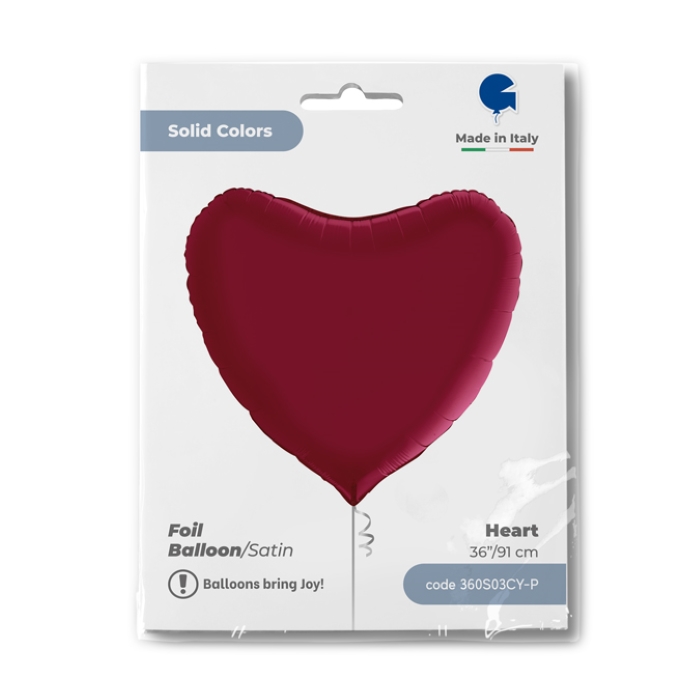 Шар (36''/91 см) Сердце, Вишневый, Сатин, 1 шт. в уп.