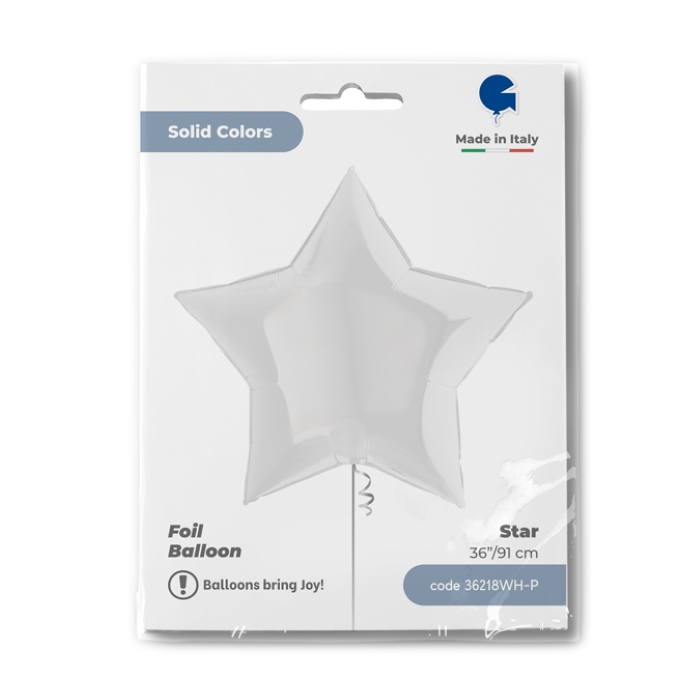 Шар (36''/91 см) Звезда, Белый, 1 шт. в уп.