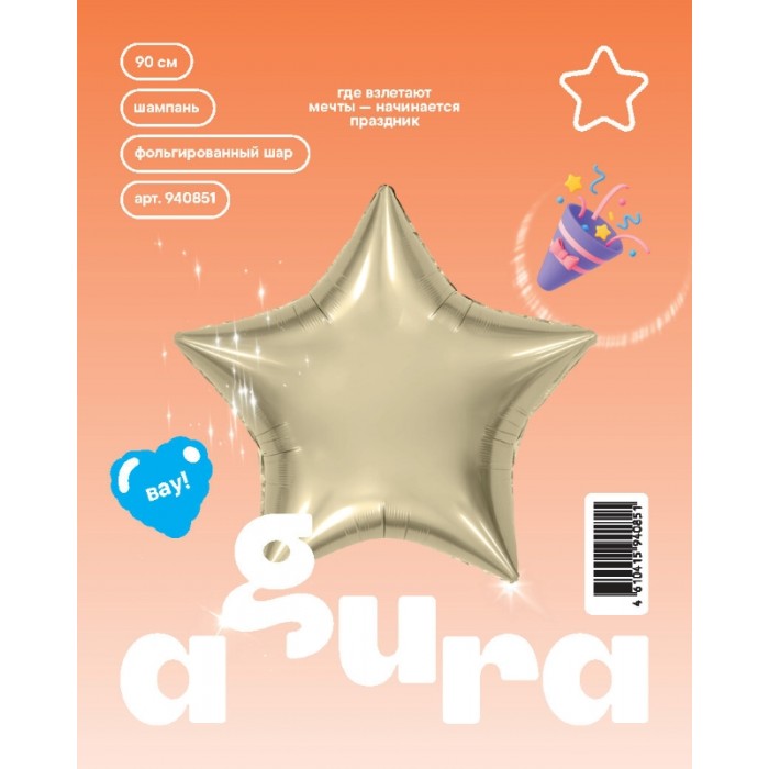 Шар (36''/91 см) Звезда, Шампань, 1 шт. в уп.