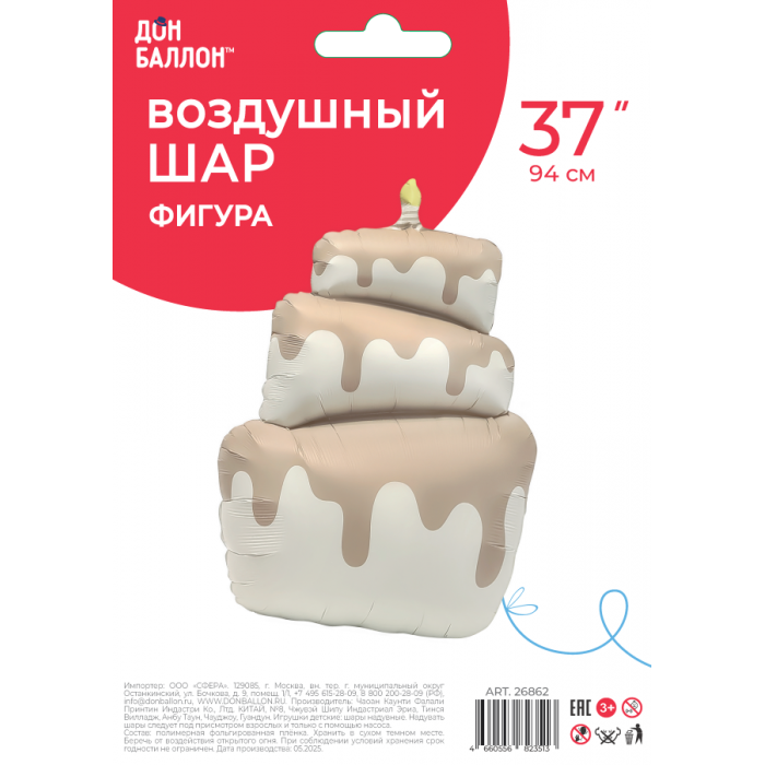 Шар (37''/94 см) Фигура, Торт, Бежевый, Сатин, 1 шт. в уп.