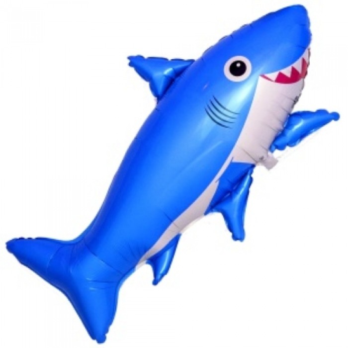 Шар (39''/99 см) Фигура, Счастливая акула, Синий, 1 шт.