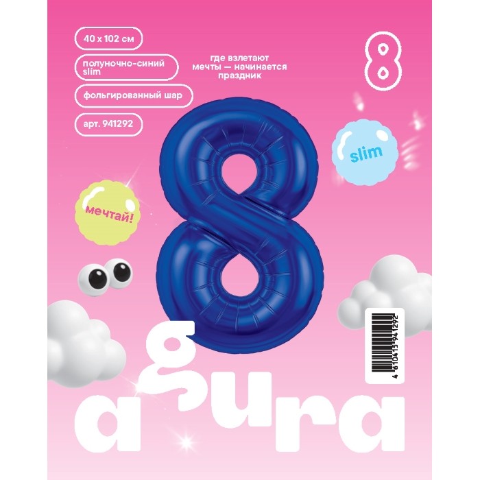 Шар (40''/102 см) Цифра, 8 Slim, Полуночно-синий, 1 шт. в уп.