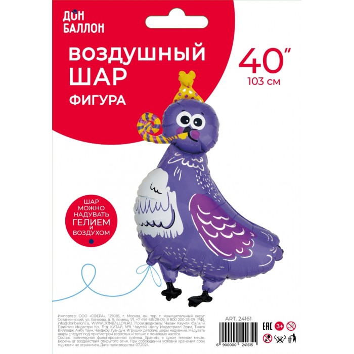 Шар (40''/102 см) Фигура, Голубь в колпачке, 1 шт. в уп.