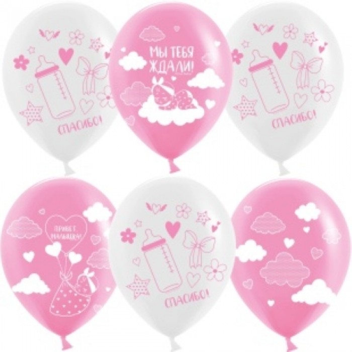 Шар (12''/30 см) Привет, Малышка!, Белый/Розовый, пастель, 2 ст, 25 шт.