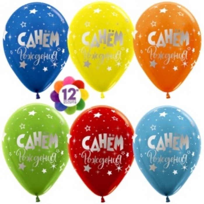 Шар (12''/30 см) С Днем Рождения! (серебряные звезды), Ассорти, пастель, 5 ст, 25 шт.