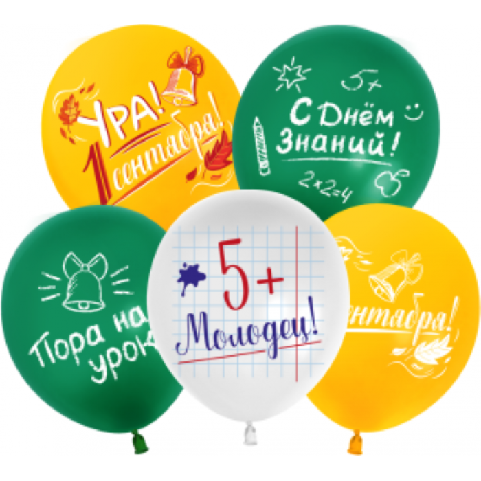 Шар (12''/30 см) Ура, 1 Сентября!, Ассорти, пастель, 2 ст, 25 шт.