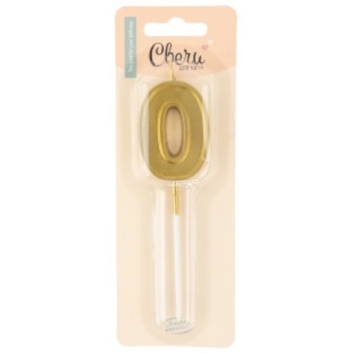 Свеча Цифра, 0 Чистая линия, на шпажке, Золото, 4,7*6,7 + 7 см, 1 шт. с держат.
