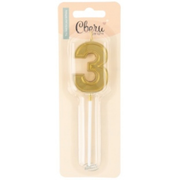 Свеча Цифра, 3 Чистая линия, на шпажке, Золото, 4,7*6,7 + 7 см, 1 шт. с держат.