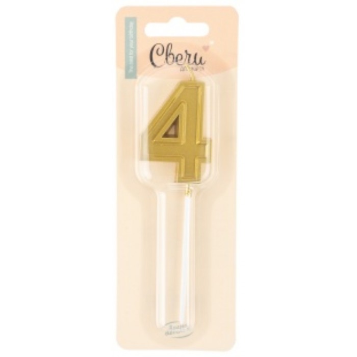 Свеча Цифра, 4 Чистая линия, на шпажке, Золото, 4,7*6,7 + 7 см, 1 шт. с держат.