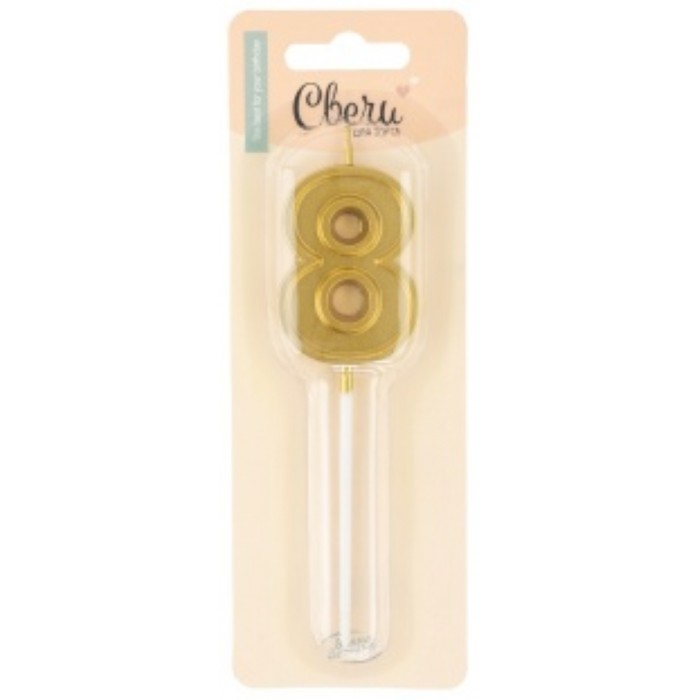 Свеча Цифра, 8 Чистая линия, на шпажке, Золото, 4,7*6,7 + 7 см, 1 шт. с держат.