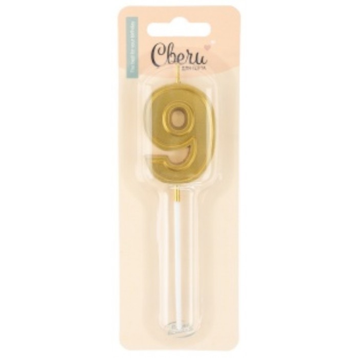 Свеча Цифра, 9 Чистая линия, на шпажке, Золото, 4,7*6,7 + 7 см, 1 шт. с держат.