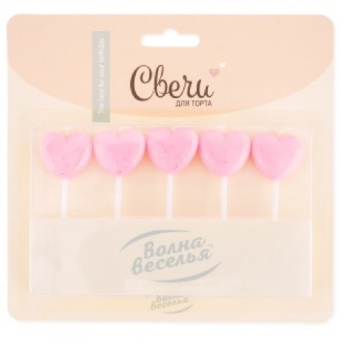 Свечи Сердце, Розовый, с блестками, 5 шт. с держат.