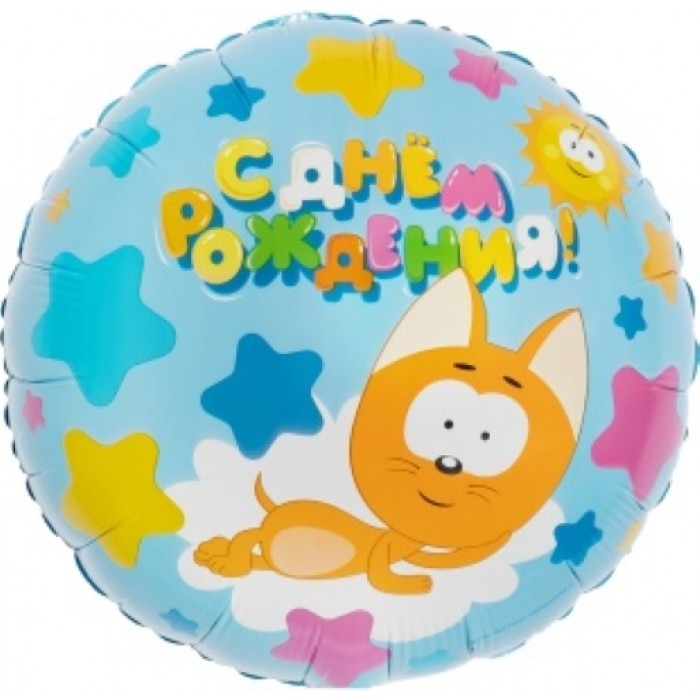Шар (18''/46 см) Круг, Котенок Котэ, С Днем Рождения!, 1 шт. в уп.