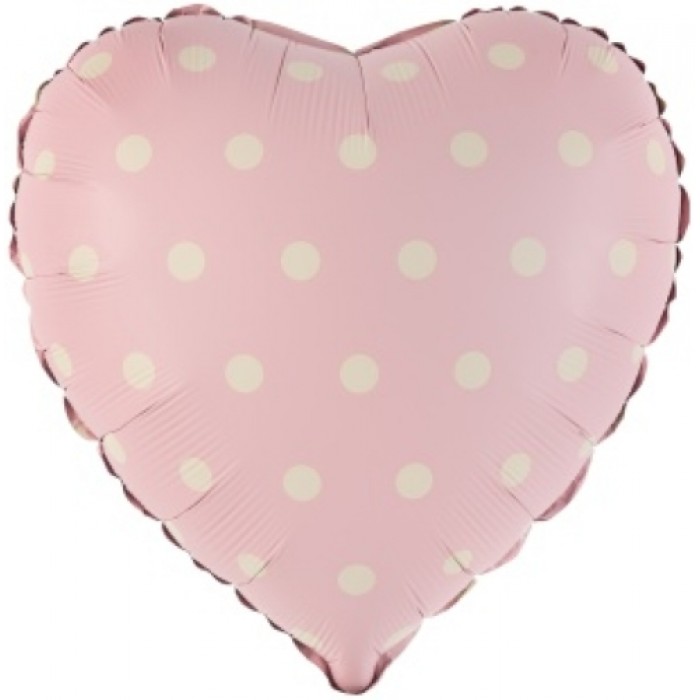 Шар (18''/46 см) Сердце, Кремовый горошек, Розовый, 1 шт.