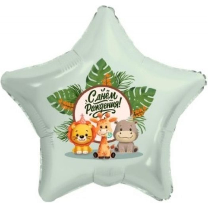Шар (19''/48 см) Звезда, С Днем Рождения! (веселые зверята), 1 шт.