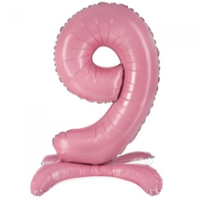 Шар (32''/81 см) Цифра, 9 на подставке, Розовый, 1 шт. в уп.