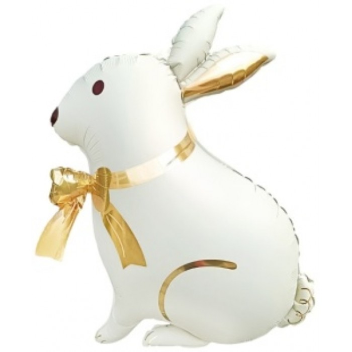 Шар (33''/84 см) Фигура, Зайка с золотым бантиком, Сатин, 1 шт.
