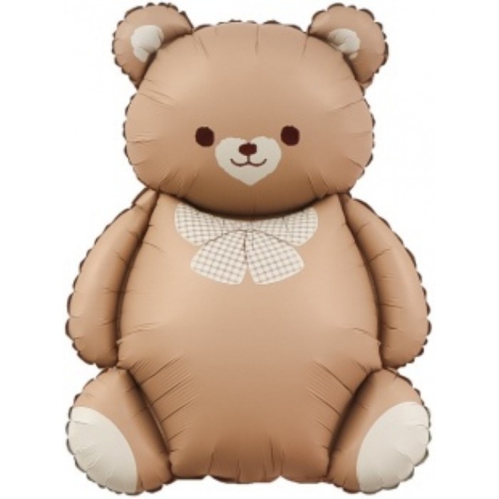 Шар (35''/89 см) Фигура, Мишка с бантом, Коричневый, Сатин, 1 шт. в уп.