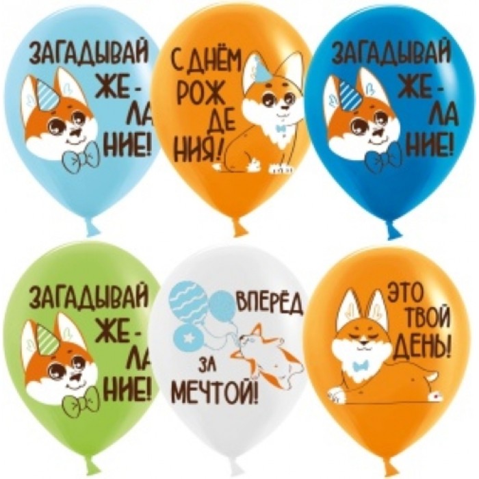 Шар (12''/30 см) Корги, Ассорти, пастель, 1 ст, 25 шт.