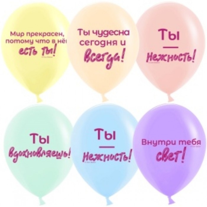Шар (12''/30 см) Нежные слова, Ассорти, пастель, 2 ст, 25 шт.