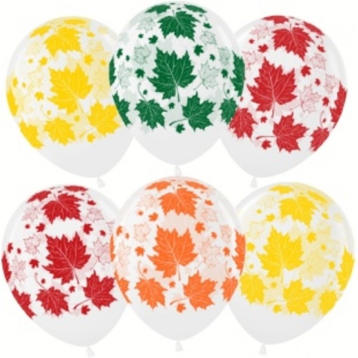 Шар (12''/30 см) Разноцветные листья, Прозрачный, кристалл, 5 ст, 25 шт.