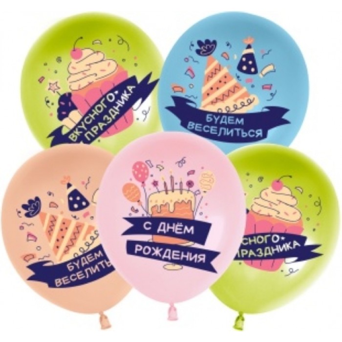 Шар (12''/30 см) С Днем Рождения, Вкусного праздника!, Ассорти, пастель, 1 ст, 25 шт.