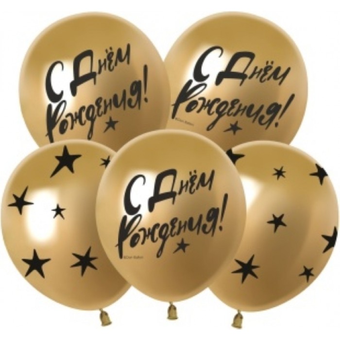 Шар (12''/30 см) С Днем Рождения! (звезды), Золото, хром, 5 ст, 25 шт.