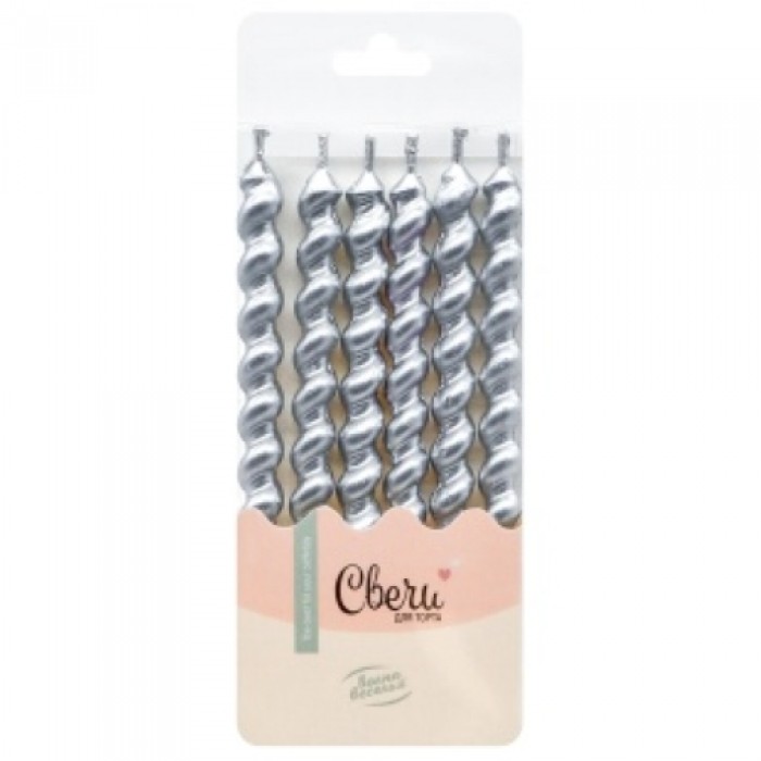 Свечи Роскошная серия, Серебро, Металлик, 0,8*7,5 + 2,5 см, 6 шт. с держат.